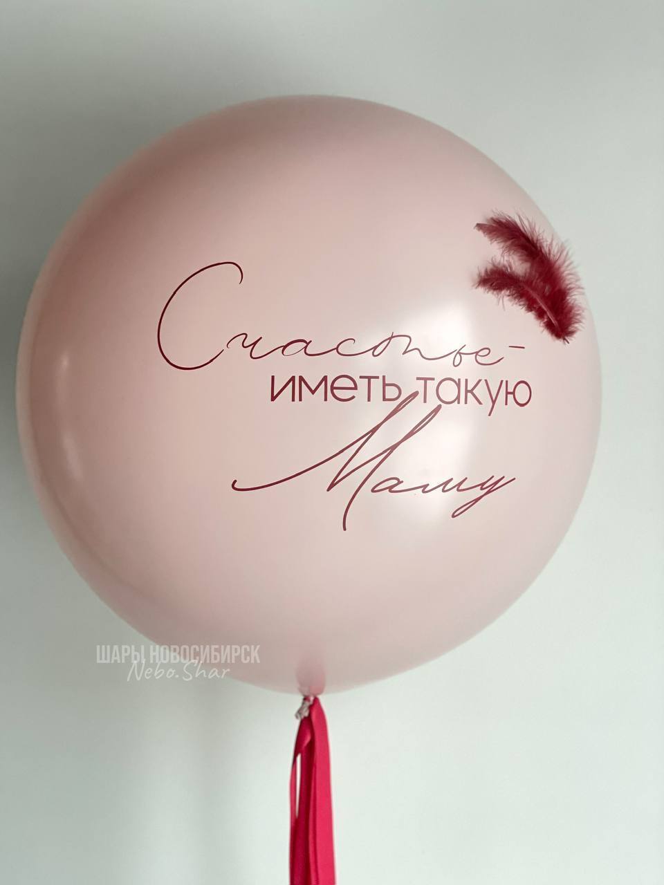 - Латексный шар 60 см с надписью и перьями на шаре